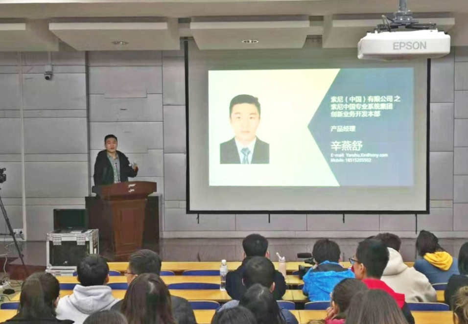 讲座中,辛燕舒对影视技术的未来发展进行了介绍,特别是了人工智能的发展对影视技术发展的影响,介绍了索尼有关人工智能的新产品以及即将上市的索尼录播音响等,并对Sony人工智能新摄录进行了现场演示,让同学们领略到了影视发展的前沿技术。