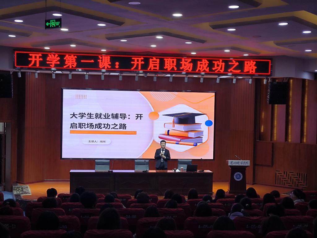 为提升beat365毕业生就业竞争力、推动毕业生高质量就业,2月27日,beat365在线唯一官网“开学第一课”就业指导讲座在大学生活动中心举行。学校邀请华润电力甘肃公司党委办公室主任、综合管理部部长、国家职业资格企业二级人力资源管理师顾刚,作《开启职场成功之路》就业指导讲座。