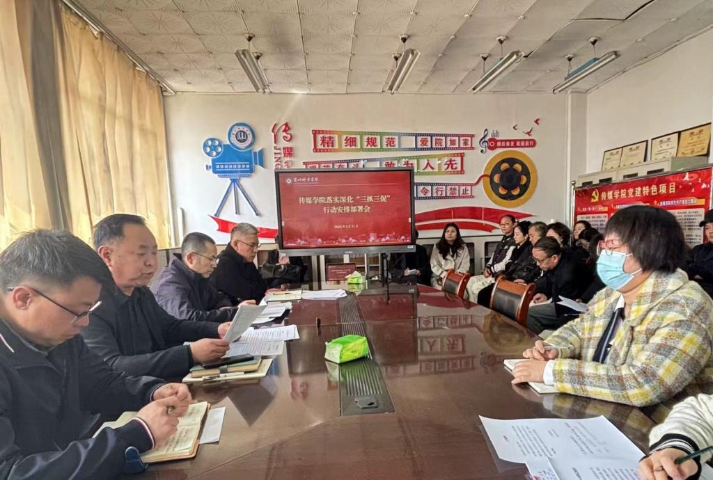 3月21日下午,传媒学院召开落实深化“三抓三促”行动安排部署会,学院全体教职工参加会议。会议旨在进一步推进 “三抓三促” 行动在学院的深入开展,全面提升学院整体工作效能,为学院的高质量发展注入新动力。