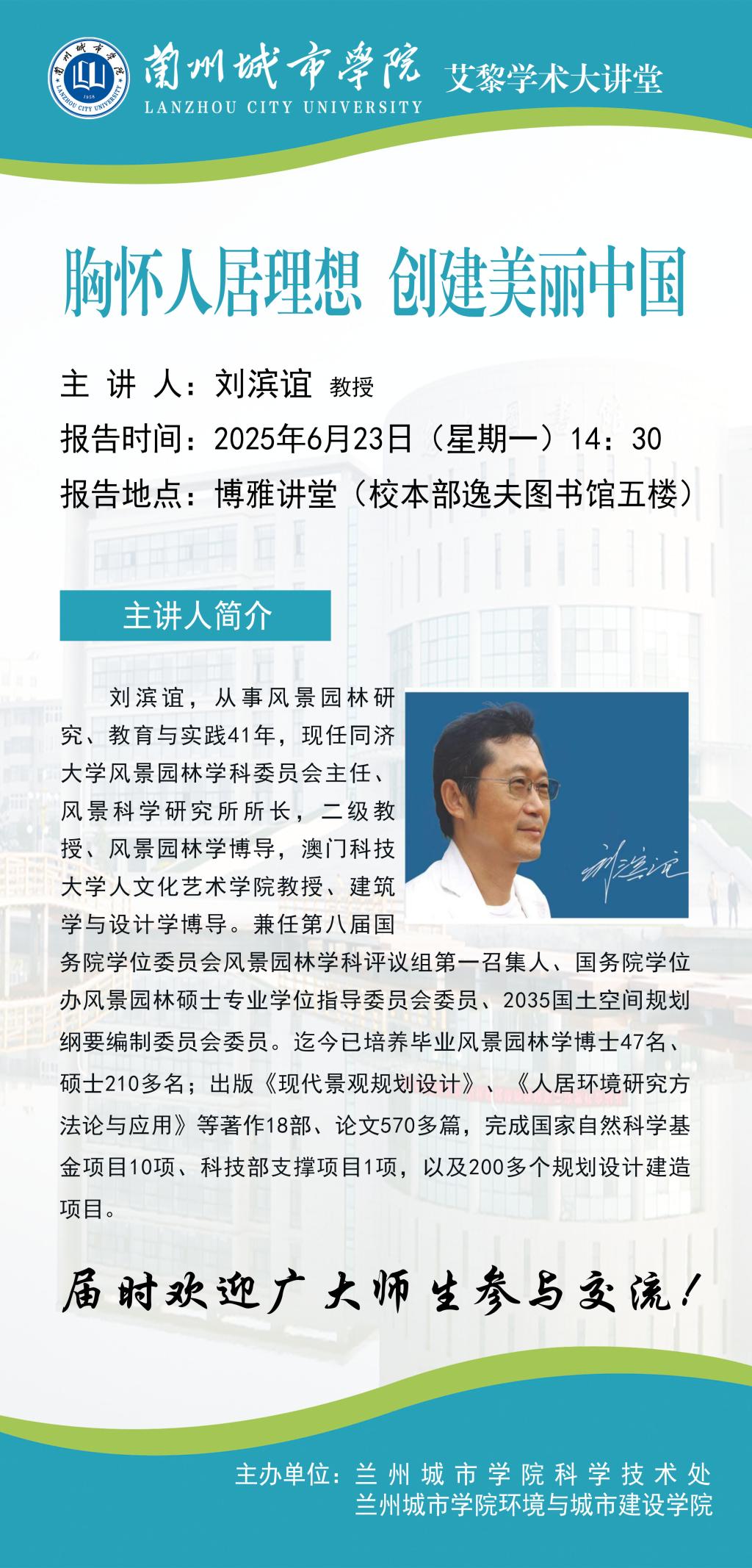 应科学技术处、环境与城市建设学院联合邀请,同济大学刘滨谊教授将来beat365作学术报告。具体事宜公告如下: