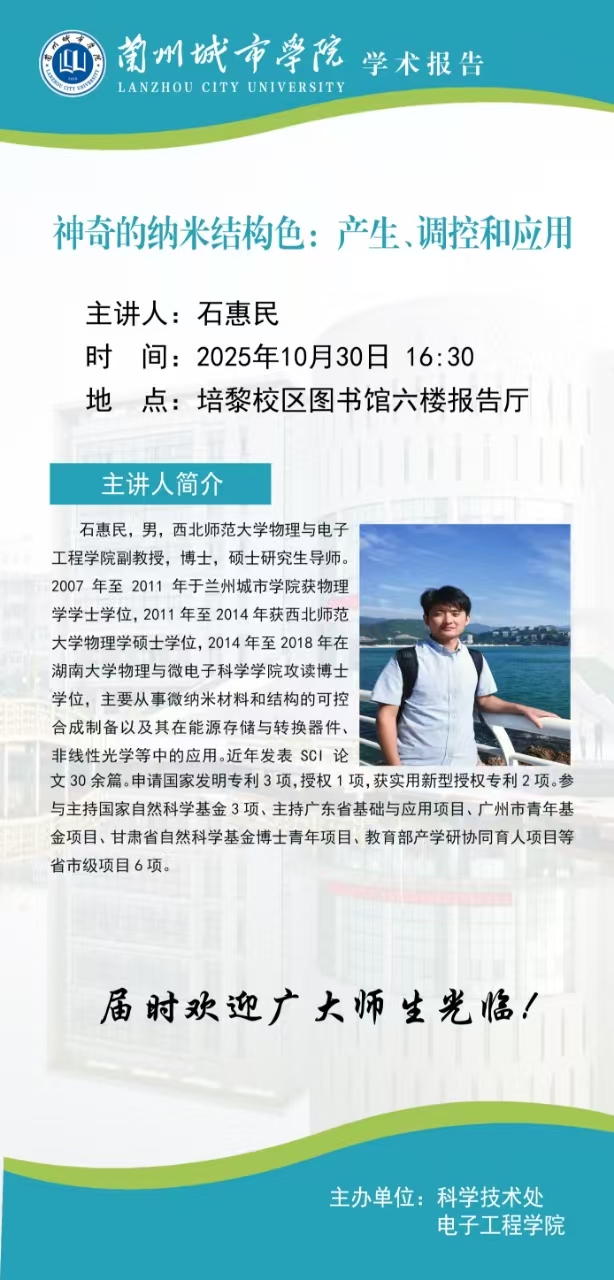 报告题目:神奇的纳米结构色:产生、调控和应用
