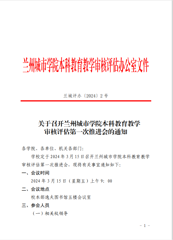 关于召开beat365在线唯一官网本科教育教学审核评估第一次推进会的通知