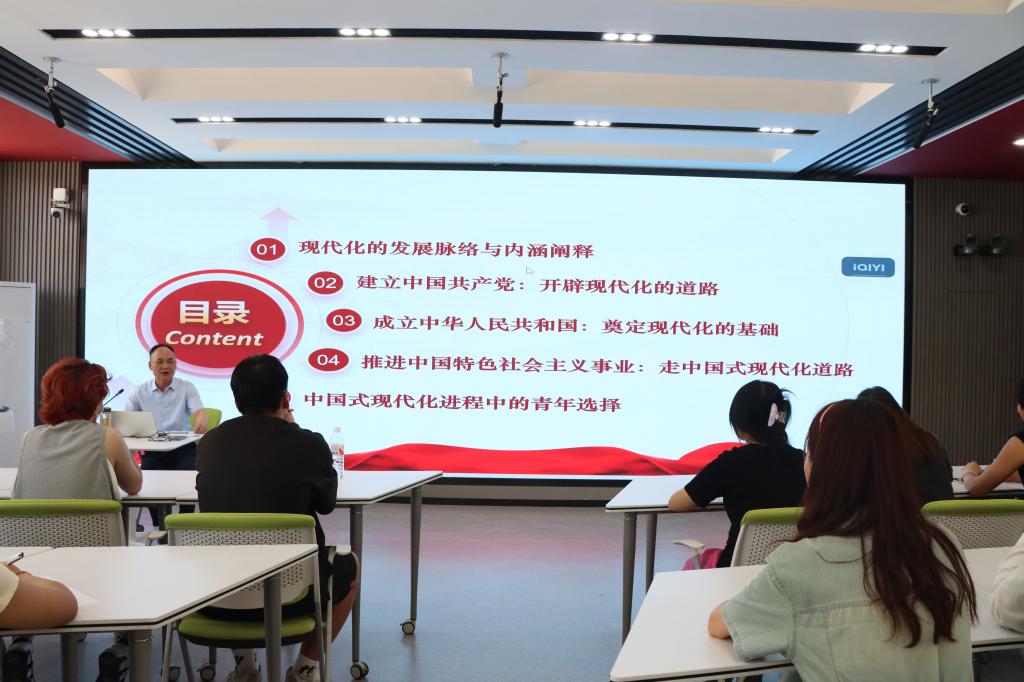 方忠义为同学们详细生动地讲解了中国式现代化的内涵阐释、发展脉络和本质特征,从“建立中国共产党:开辟现代化的道路”“成立中华人民共和国:奠定现代化的基础”“推进中国特色社会主义事业:走中国式现代化道路”三个方面,阐述了中国共产党成立以来,带领中国人民围绕实现现代化的目标,在中国革命和建设的伟大实践中取得的巨大成就,阐释了“中国式现代化”所包含的中国特征。
