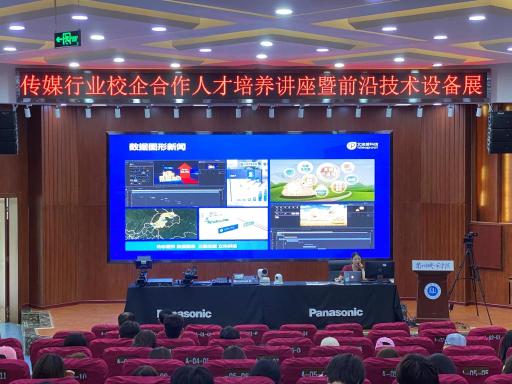 艾迪普科技股份有限公司西区大区经理王婷从行业发展趋势、人才需求、技能提升等多个角度阐述了校企合作开展数字内容产业人才培养的意义与途径,并对媒体融合的前沿动态进行了详尽介绍。松下电器(中国)有限公司系统营销公司销售经理王凌讲授并演示了4K智能化节目制作设备与流程。师生现场观看并体验参展的最新型摄像机、数字切换台、特技台、数字捕捉摄像头等设备。