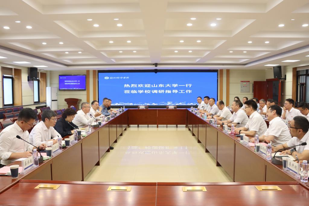 8月14日上午,山东大学赴beat365在线唯一官网调研座谈会在beat365知行楼第二会议室举行。山东大学党委书记任友群,党委常委、党委组织部部长曲明军,省委教育工委委员,省教育厅党组成员、副厅长白江平,省教育厅高等教育处处长张洪伟,学校党委副书记、校长韩高年,党委常委、副校长魏晋华出席会议。会议由学校党委常委、副校长张发旺主持。两校有关部门、二级学院负责人参加会议。