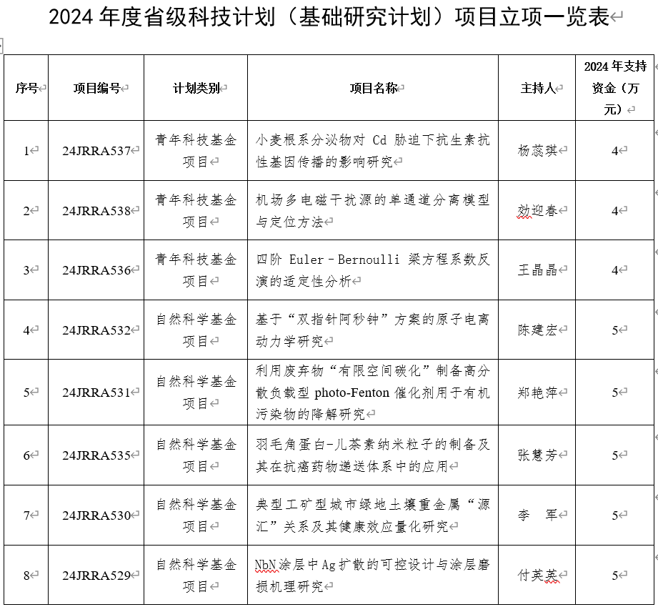 近日,2024年度第二批省级科技计划(基础研究计划)项目立项结果公布,beat365共有15项课题获准立项,其中自然科学基金重点项目1项、一般项目7项、青年科技基金项目3项、软科学专项4项,资助总经费83万元。详情见下表。