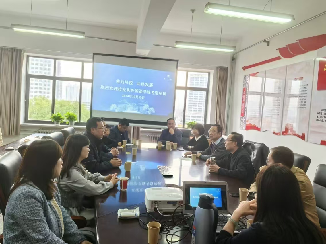 外国语学院召开了“荣归母校,共谋发展”校友座谈会。校友们满怀对母校的深情重返校园,齐聚一堂,与学院相关责任人亲切座谈,深情回顾自己在母校度过的美好时光,并向师生们分享了他们的学习经历和青春故事。