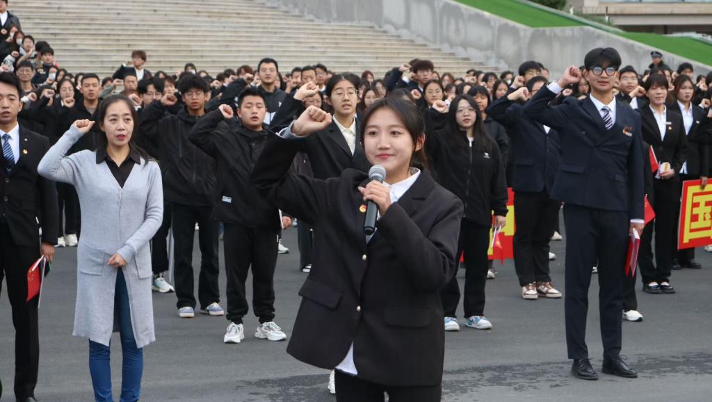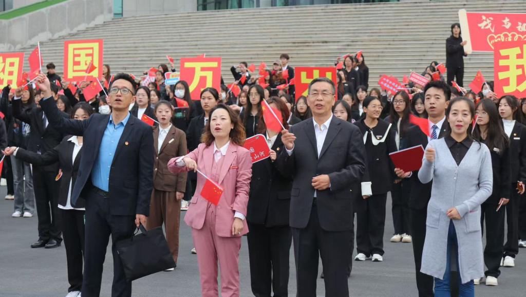 为隆重庆祝中华人民共和国成立75周年,进一步加强大学生爱国主义教育,引导和帮助广大青年学生坚定理想信念,树立爱国报国之志,以实际行动为中国式现代化挺膺担当。9月30日上午,校团委组织全校1000余名师生,在校本部文翠广场开展庆祝中华人民共和国成立75周年“青春告白祖国”特别主题团日活动。校党委常委、副校长李慕堂出席活动。