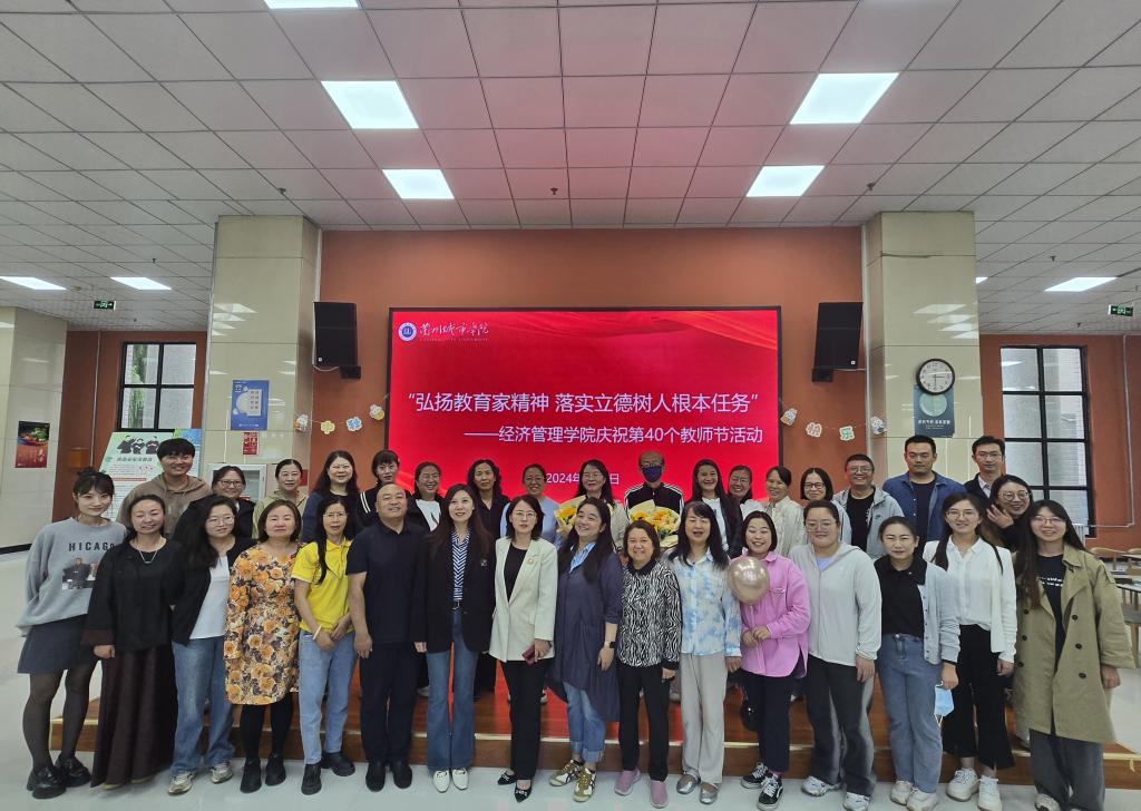 经济管理学院在校本部开展“弘扬教育家精神、落实立德树人根本任务”为主题的第四十个教师节活动。学院为老师们精心准备了教师节礼物,教师分享代表了自己的教学经验、科研经验、班主任工作经验。学生代表用一首《至少还有你》表达了对老师们真诚而美好的祝愿。