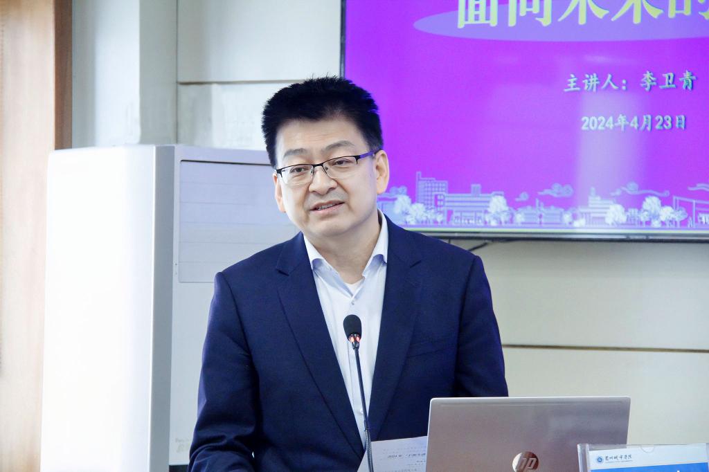 4月23日上午,学校“干部大讲堂”第一讲开讲。华南理工大学党委常委、副校长李卫青受邀做题为《面向未来的大学》的专题讲座。校党委副书记、校长韩高年主持并总结。