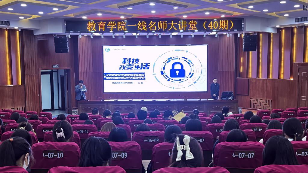 3月25日,教育学院邀请了甘肃省教育科学研究院教研员岳磊作了题为“义务教育科学课程标准实施过程的问题、对策及科学监测评价”的讲座。学院教师和学生共300人参加讲座。