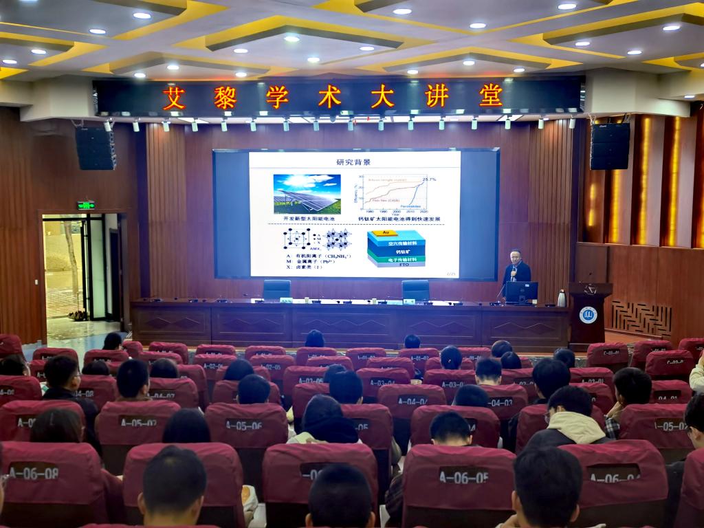 讲座围绕新型卟啉/酞菁配合物空穴传输材料、钙钛矿修饰材料的有效构筑以及高效稳定大面积钙钛矿太阳能电池组装三个方面进行了详细介绍,指出有机-无机杂化钙钛矿太阳能电池作为一种新型光伏技术具有广阔的的发展前景。讲座对于beat365师生深入了解有机-无机杂化钙钛矿太阳能电池领域研究前沿及其产业应用具有积极的指导意义。