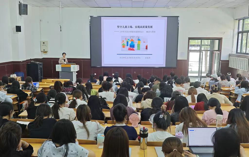 为深入贯彻落实《中华人民共和国学前教育法》,全面提升学前教育法治化、规范化水平,应幼儿师范学院邀请,5月29日下午,西北师范大学教授、博士生导师、学前教育专业学科负责人孙爱琴在城关校区学术报告厅作题为《坚守儿童立场,实现高质量发展 ——〈中华人民共和国学前教育法〉解读与贯彻》的专题报告。幼儿师范学院师生及城关区曙光幼儿园教师代表近200人参加活动,讲座由学院相关负责人主持。