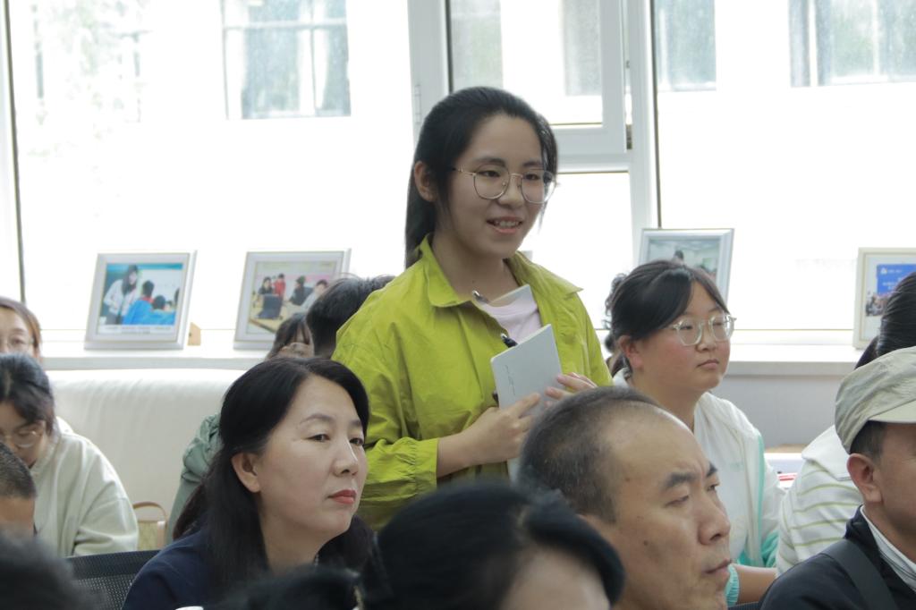 互动环节中,王荣生与师生亲切交流,指出“语文素养应是学生可迁移的能力”“教学须立足于真实情境”等观点,引发强烈共鸣与深入思考。