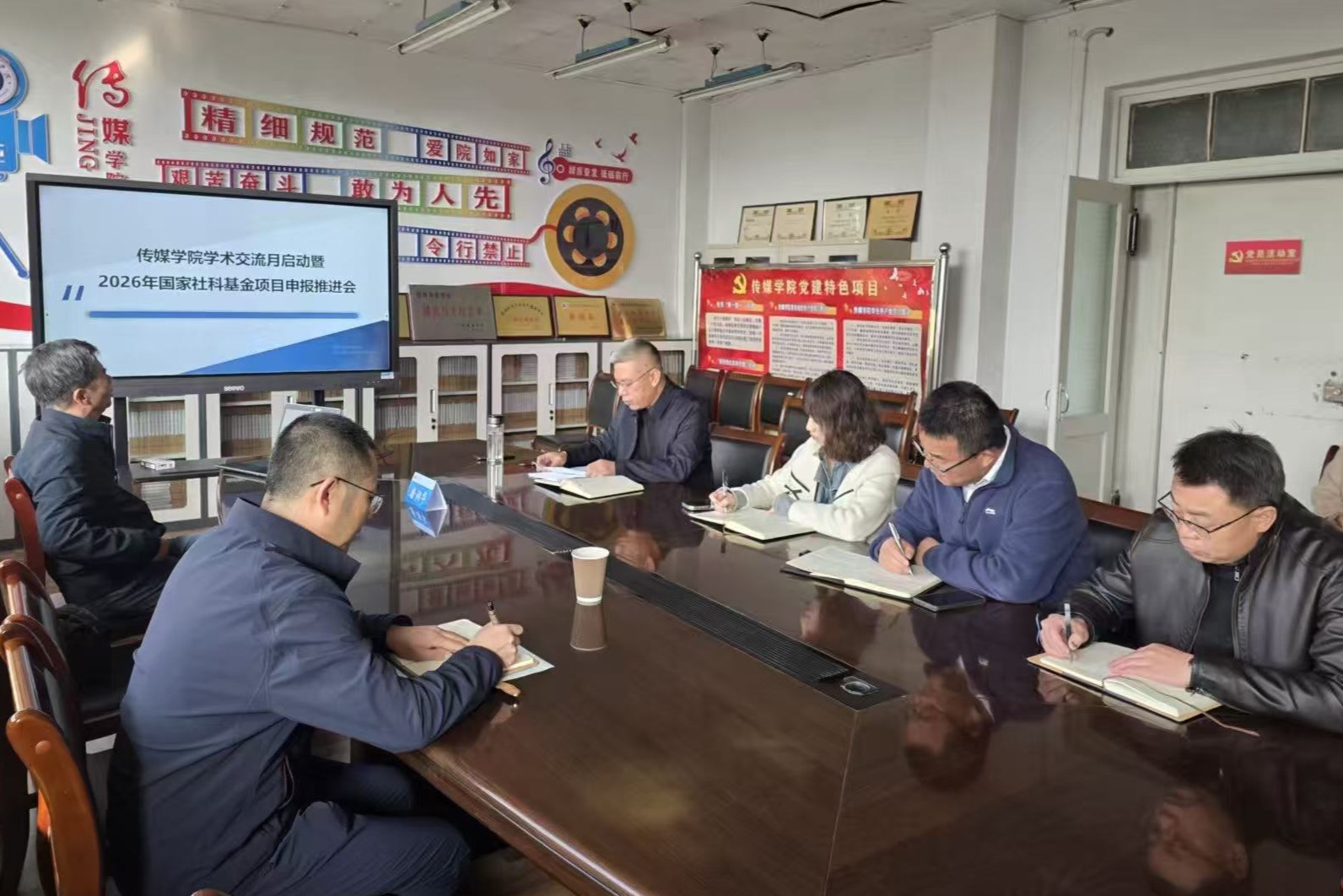 为推动学院学科建设,切实解决高级别项目申报难、高水平论文发表难、应用型成果向学术成果转化难等问题,10月27日上午,传媒学院学术交流月启动仪式在学院会议室举行,随后举办“国家社科基金项目的选题设计”专题讲座。学院领导班子成员及无课教师参加活动。