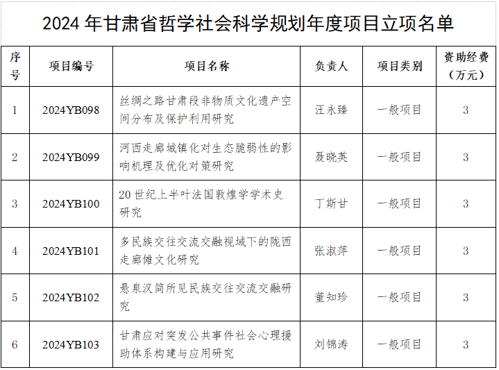 beat365获批6项2024年度甘肃省哲学社会科学规划项目