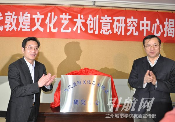 连辑和蔡建明共同为“当代敦煌文化艺术创意研究中心”揭牌。