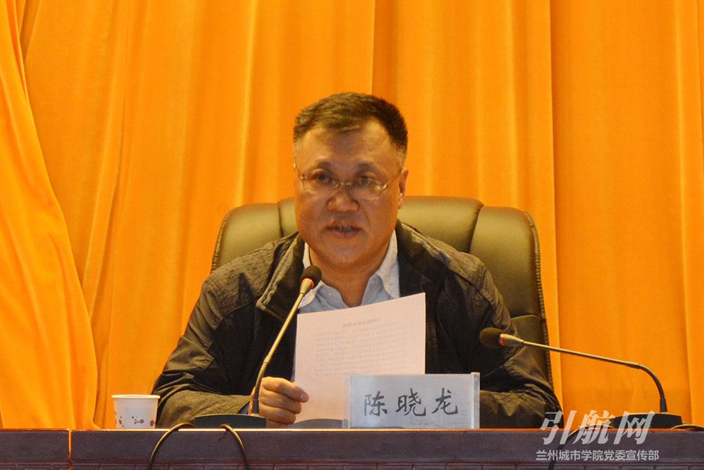 报告会上,陈晓龙传达了甘肃省委组织部《关于做好学习贯彻习近平总书记在参加十三届全国人大二次会议甘肃代表团审议时的重要讲话精神轮训工作的通知》,对学校开展集中轮训工作进行了安排。学校轮训采取党委常委会专题学习、党委理论学习中心组学习、专题辅导报告、分组自学、分组研讨、调研帮扶等形式开展。通过轮训,帮助党员干部充分认识习近平总书记讲话的重大意义,自觉用讲话精神武装头脑、指导实践、推动工作;帮助党员干部进一步提高政治站位,增强贯彻落实的自觉性和坚定性;帮助党员干部进一步明确职责任务,提高实际能力,推动学校各项事业取得实效。