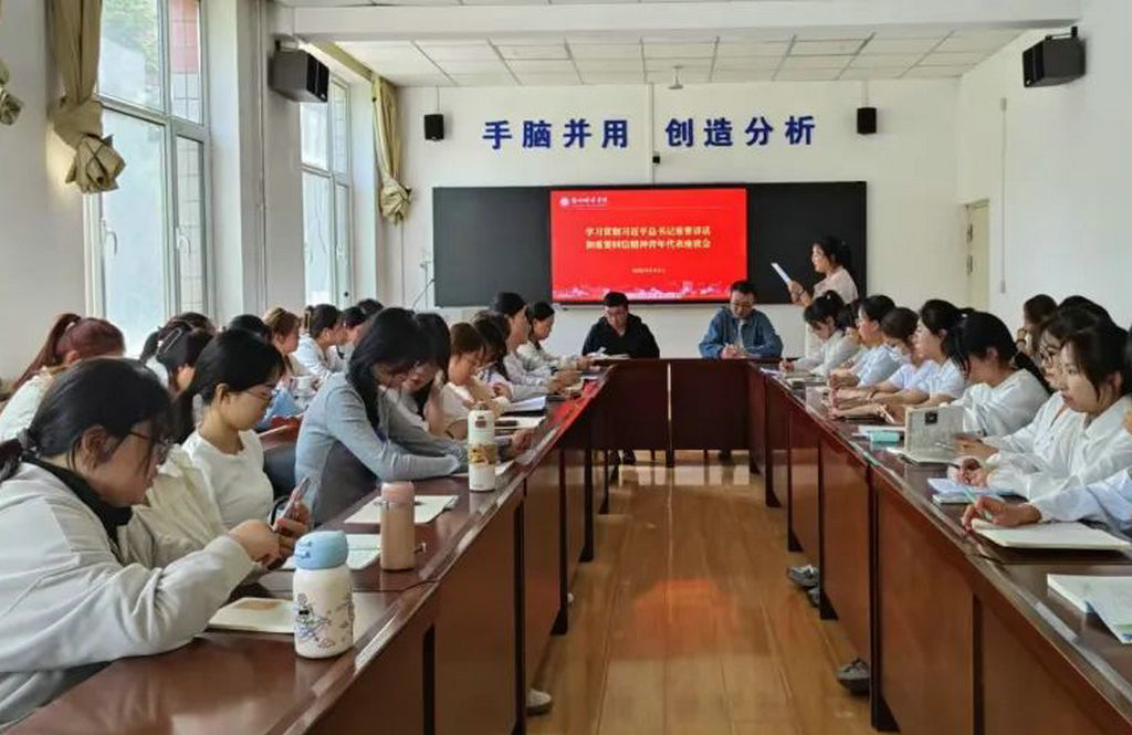 团学办教师围绕习近平总书记给谢依特小学戍边支教西部计划志愿者服务队队员的回信精神开展了专题领学活动,与会团员青年热议习近平总书记给谢依特小学戍边支教西部计划志愿者服务队队员的回信,四位学生代表作了主旨发言,她们结合自身学习、生活和社会实践经历,畅谈了学习习近平总书记重要讲话和重要回信精神的深刻感悟。并号召大家向戍边支教志愿者学习,在教育实践中厚植爱国情怀,以专业所学为边疆孩子点亮梦想明灯。