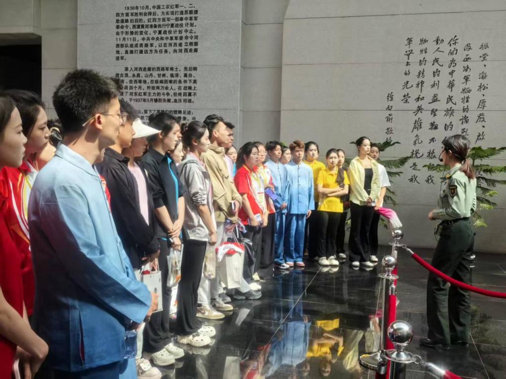 在讲解员的讲解中,透过红五军军长董振堂“毁家纾难”的遗物、布满缺口的战斗大刀等2000余件文物,以及声光电还原的高台战役场景,深入了解1937年西路军将士“人在高台在”的悲壮历程。讲解员特别讲述了先烈衣袋里仅存3块银元却写下“头颅不惜抛掉”绝命诗的细节,让师生们在历史现场中感受信仰力量。
