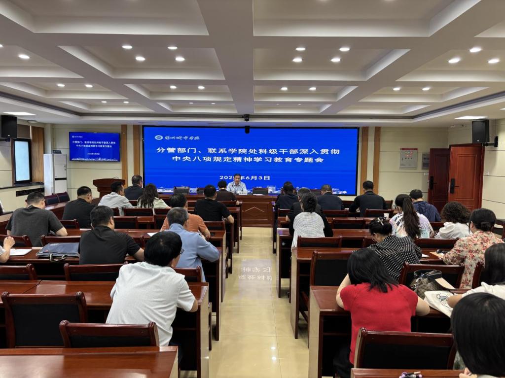 李慕堂指出,党中央决定在全党开展深入贯彻中央八项规定精神学习教育,这是今年党建工作的重点任务。中央八项规定精神聚焦党的作风建设,为新形势下作风建设抓什么、怎么抓,指明了方向、明确了要求。各部门、各学院处科级干部要搞清楚党的纪律规矩是什么,弄明白能干什么、不能干什么,着力解决对党规党纪不上心、不了解、不掌握等问题,推动二级学院党组织和领导班子从严抓好党的纪律建设,推动广大党员、干部自觉做到忠诚干净担当。各部门、各学院要以“学规定、找问题、正作风、严纪律、促发展”为主线,切实扛起全面从严治党主体责任,准确把握学习教育的内涵要求和精神实质,紧密结合中心工作,确保学有质量、查有力度、改有成效。