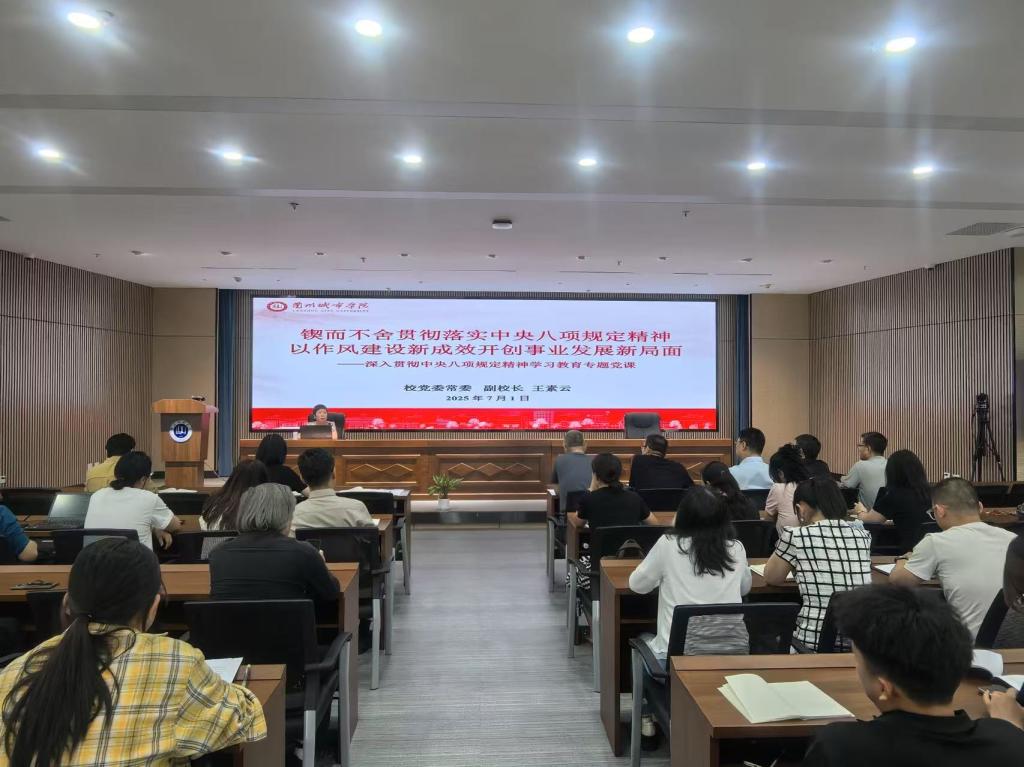 71日下午,校党委常委、副校长王素云在逸夫图书馆博雅讲堂以《锲而不舍贯彻落实中央八项规定精神 以作风建设新成效开创事业发展新局面》为主题,讲授深入贯彻中央八项规定精神学习教育专题党课。相关部门、二级学院处科级干部、党支部书记和党员代表听取授课。