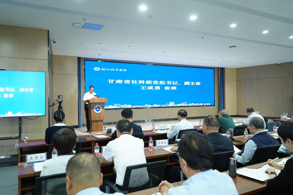 王成勇代表甘肃省社科联对高研院成立表示祝贺。他提出高研院应坚守传承创新使命,深入挖掘中华优秀传统文化内涵与时代价值,推动其创造性转化、创新性发展,为构建中国特色哲学社会科学贡献智慧;聚焦服务地方发展,充分发挥学科、人才和资源优势,围绕甘肃省经济社会发展重大问题开展深入研究,打造高水平新型智库,提出高质量决策咨询建议;深化开放合作交流,通过举办学术活动、建立合作关系,提升学术影响力。他表示省社科联将全力支持高研院发展。