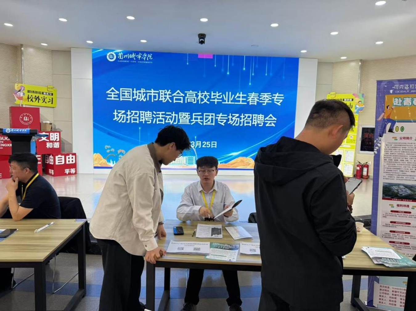 3月25日,学校邀请新疆生产建设兵团人力资源和社会保障局在校本部大学生活动中心举办专场招聘会。