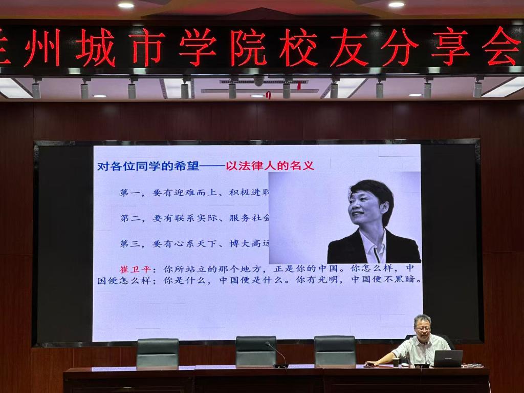 9月28日,“深入学习全面贯彻习近平法治思想 践行法治精神 把握人生方向”主题校友分享会在校本部大学生活动中心举行。甘肃省社会科学院马克思主义研究所所长、学校1994级优秀校友、马克思主义学院兼职教授冯之东应邀返校,为校本部各学院学生作专题报告。